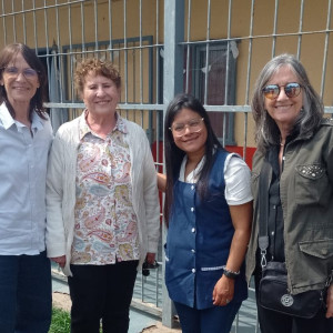 En la periferia de la ciudad, detrás del cementerio, las recibió Ivana Gonzalez en el Jardín “San Pantaleón”. Este jardín y el de “Alto Verde”, pertenecientes al “Movimiento de los Sin Techo”, tienen 2 Guias AMI becadas por FAMM. Ivana comenzó la transformación de maestra tradicional en marzo. En el verano fue cosiendo y reuniendo materiales donados ¡y está muy abierta a recibir más! Las esperaron con una mesa amorosamente preparada y unas ricas empanadas. Idolina quien acompañó la visita, un pilar de Montessori y la catequesis en la ciudad, les dió como regalo dos agarraderas tejidas por Silvana Montanaro y, como es tradicional en ella, una caja con dulces caseros con frutas de su casa.