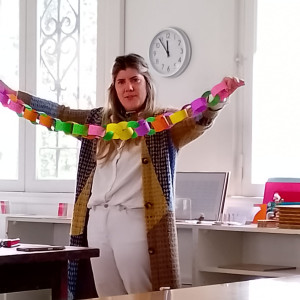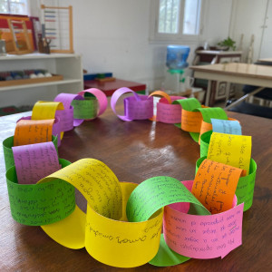 Trabajamos en el orden y armado de un ambiente y pudimos observar y discutir sobre la realidad de un ambiente montessori viendo fotos de ejemplos reales. Discutimos lecturas teóricas en grupo y también tuvimos tiempo de trabajo individual. Y, para el cierre, nos acordamos de disfrutar y compartir un rico almuerzo y usamos una dinámica final en la que cada una anotó lo que desea espera y se lleva y entre todas armamos una cadena que nos deja unidas.