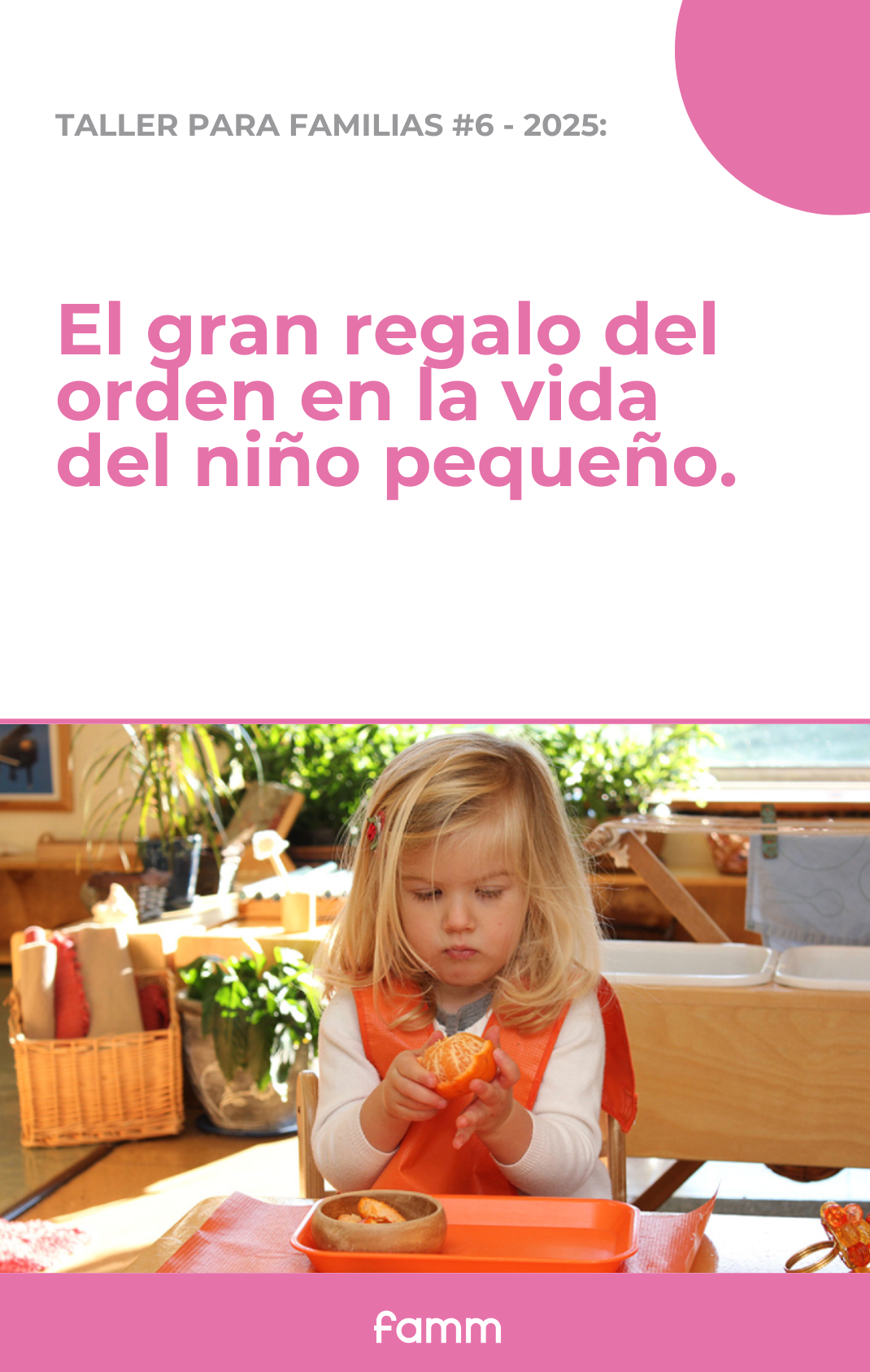 Dictado por el equipo pedagógico de FAMM, será un espacio para transformar la mirada sobre el orden en la infancia y aplicarlo en casa de manera simple pero poderosa.